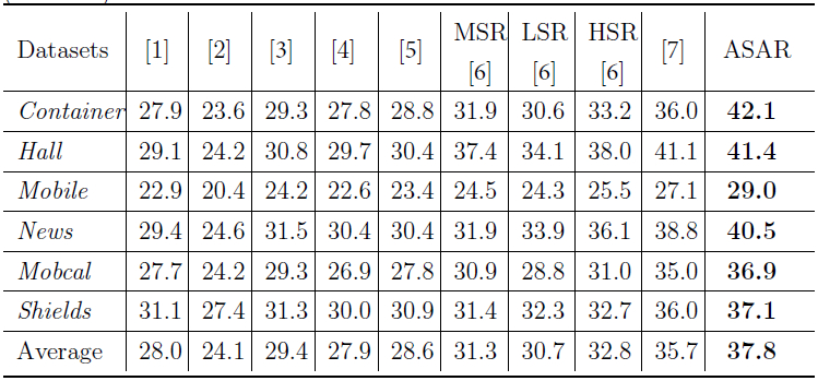 Table 1 : Quantitative evaluation for super-resolution performance of different algorithms (PSNR dB).