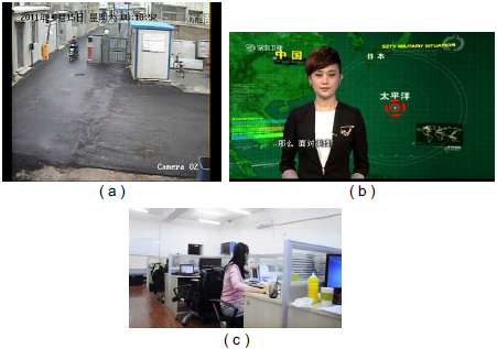 Fig. 4. Three video sequences: (a) Surveillance, (b) TV, (c) Lab.