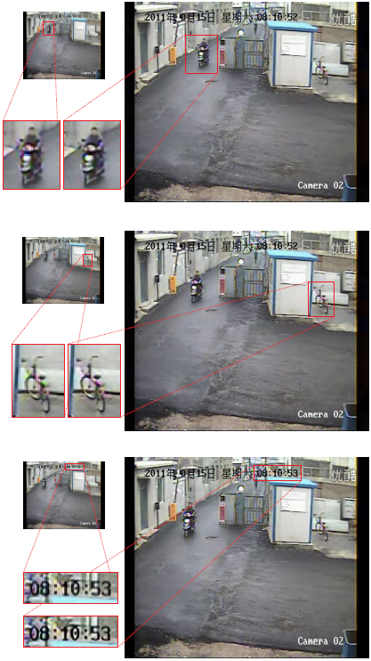 Fig. 5. Super-resolution results of Surveillance sequence by magnifying 3 times.