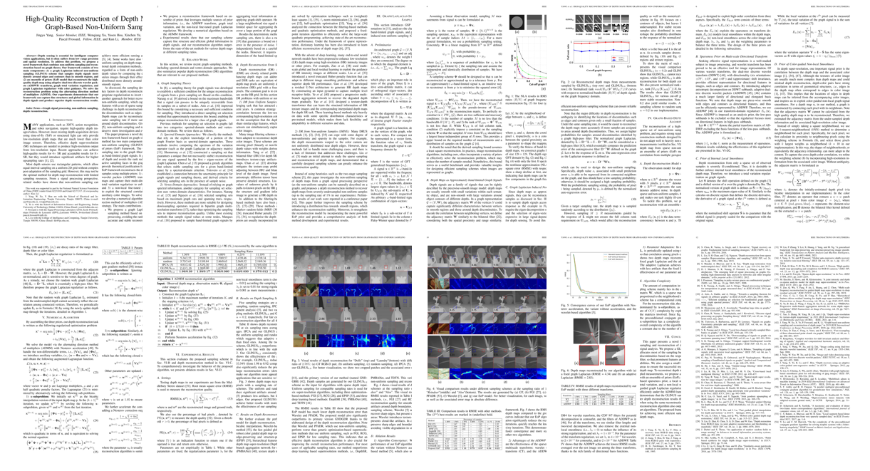 Jingyu Yang, Wenqiang Xu, Yusen Hou, Xinchen Ye, Pascal Frossard, and Kun Li*, High-Quality Reconstruction of Depth Maps From Graph-Based Non-Uniform Sampling, IEEE Transactions on Multimedia, 2023.