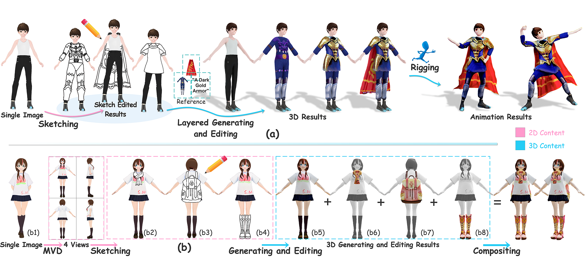 Yi Wang, Jian Ma, Zhuo Su, Guidong Wang, Yu-Kun Lai, Kun Li. "DreamCoser: Controllable Layered 3D Character Generation and Editing". SIGGRAPH Asia 2025 Technical Communications, 2025.