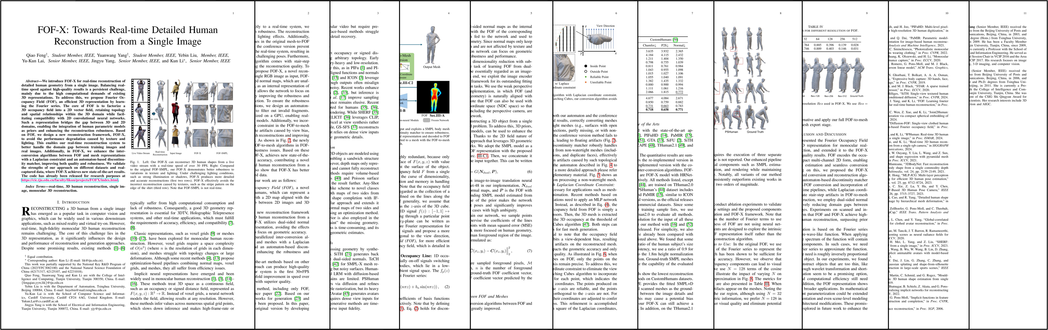 Qiao Feng, Yuanwang Yang, Yebin Liu, Yu-Kun Lai, Jingyu Yang, Kun Li. "FOF-X: Towards Real-time Detailed Human Reconstruction from a Single Image". IEEE Transactions on Multimedia, 2026.