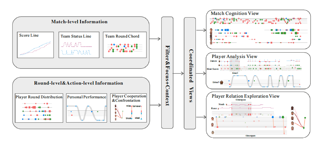 MatchOrchestra: a generalized visual analytics for competitive team sports Wentao Wang, Jiawan Zhang, Xiaoru Yuan, and Shixia Liu Journal of Visualization 19(3):1-14 · January 2016. DOI: 10.1007/s12650-015-0337-3. [Paper(.PDF), 2.1MB] |