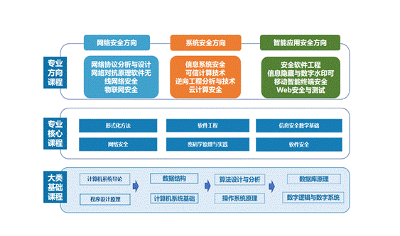 爱游戏 网络安全学院从“基础层-系统层-应用层”角度,下设网络空间安全基础、软件与系统安全理论与技术和网络空间安全应用技术三个专业方向,各具特色,具体专业和特色如下: