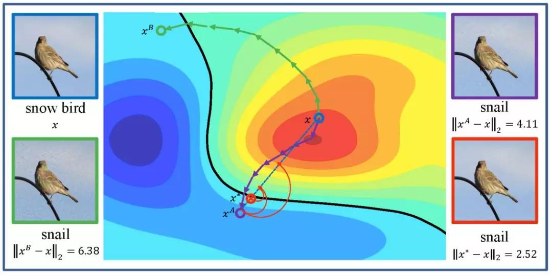 对抗机器学习(Adversarial Machine Learning)是近年人工智能安全与计算机视觉领域的研究热点,主要研究如何通过对抗攻防寻找并弥补机器学习模型的漏洞与安全隐患。现有研究中,攻击方通常沿替代模型梯度上升方向添加噪声以实现黑盒攻击,但噪声添加方向的单调性妨害了模型间对抗样本的迁移能力。如上图所示,论文所提出的方法使用Curls迭代提升对抗样本及其迭代轨迹的多样性,并使用Whey优化并“挤压”掉对抗样本中的冗余噪声,在黑盒的非针对性攻击(Untargeted Attack)和针对性攻击(Targeted Attack)上均取得优异性能。