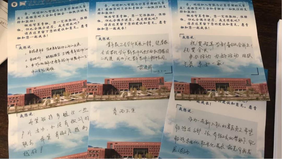 在交流环节,参会的爱游戏 青年教师代表逐一介绍个人基本情况和研究方向,大家在意见征集卡片上纷纷留下活动建议和美好祝愿。