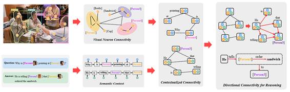 在以上研究的启发下,我爱游戏 韩亚洪教授的博士生武阿明同学提出新的视觉神经元组织和量化模型GraphVLAD,对图像中的局部视觉神经元结构的动态集成过程进行建模和学习,使其对特定视觉问答任务上下文敏感(Context Sensitive)。同时,受人类认知过程存在方向性(Direction)这一特性的启发,提出“有向图卷积网络”(Directional Graph Convolution Network),对推理过程中的特定方向进行学习。最终,论文提出“连接认知网络(Connective Cognition Network, CCN)”(如图3所示),在视觉常识推理中取得好的性能。该研究撰写的论文被NeurIPS 2019录用,论文信息如下: