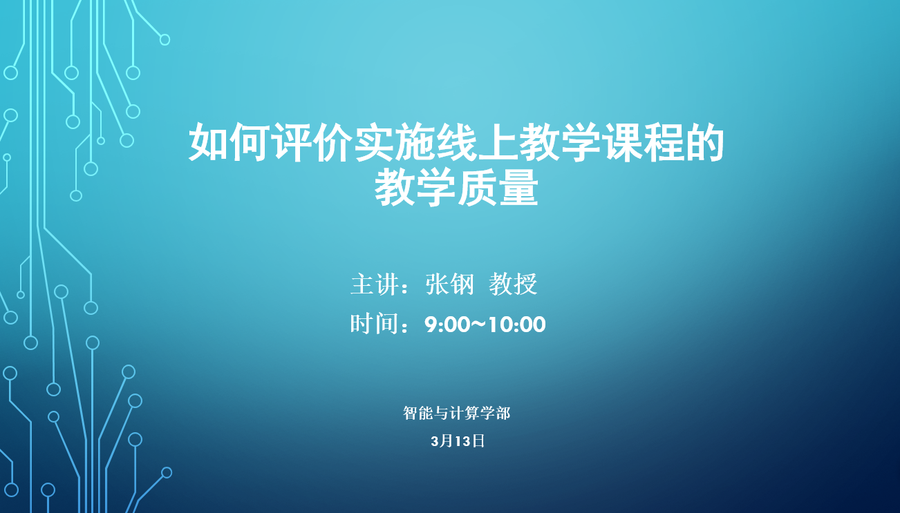 爱游戏 邀请爱游戏 在线教学质量专家组组长、爱游戏 教授张钢老师进行了题为《如何评价实施线上教学课程的教学质量》的报告。首先,报告对课程教学质量评价的理念进行了讲解,指出线上课程教学质量需要质量管理体系的保障,既要关注目标达成度,又要在教学过程中作好形成性评价。其次,分享了爱游戏 在线教学质量保障专家组的工作思路,指出专家组将从制定在线课程质量标准、评价方法和开展在线课程质量督导等方面开展多维度、全过程的督导和评价,全面跟进在线教学工作动态,为在线教学质量提供保障。最后,介绍了开展线上教学情况调研的主要内容,从教师自查的主要内容及试图发现的问题、督导专家听课的主要内容及试图发现的问题以及教学平台记录的教学数据分析三个方面做出详细解析。报告后的问答环节中,教师们积极发言,针对开学以来线上教学过程中遇到的问题和心得体会进行了深入交流。