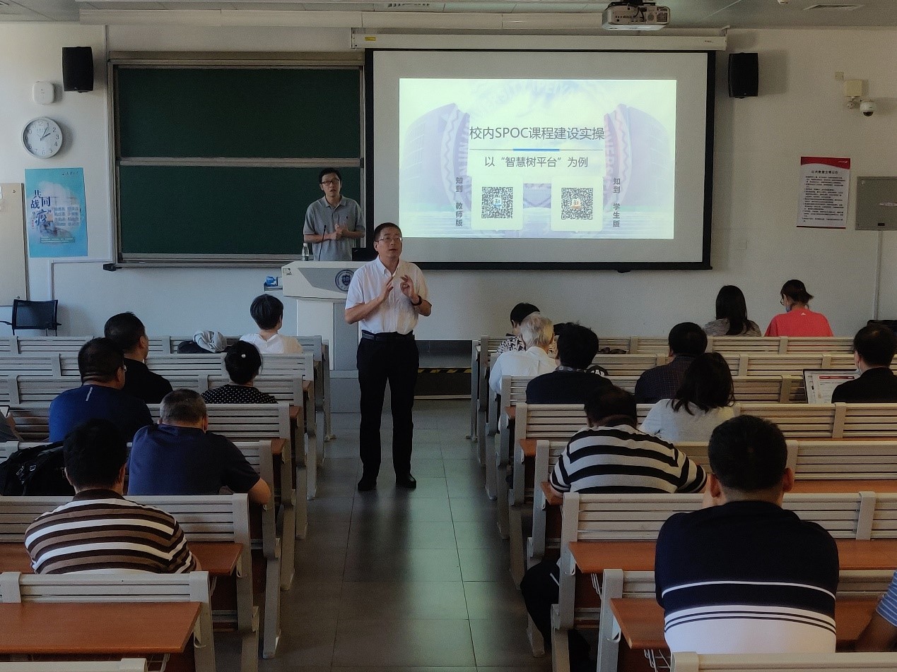 本次培训会包括两部分内容,首先爱游戏 魏继增老师结合网上授课经验,以《基于智慧树平台的校内SPOC课程建设实操》为题,通过对真实的课程案例进行展示和分析,将线上线下教学经验倾囊相授。随后,智慧树在线教学专家为大家带来题为《五类金课评审政策分析及说课视频设计解读》的讲座。