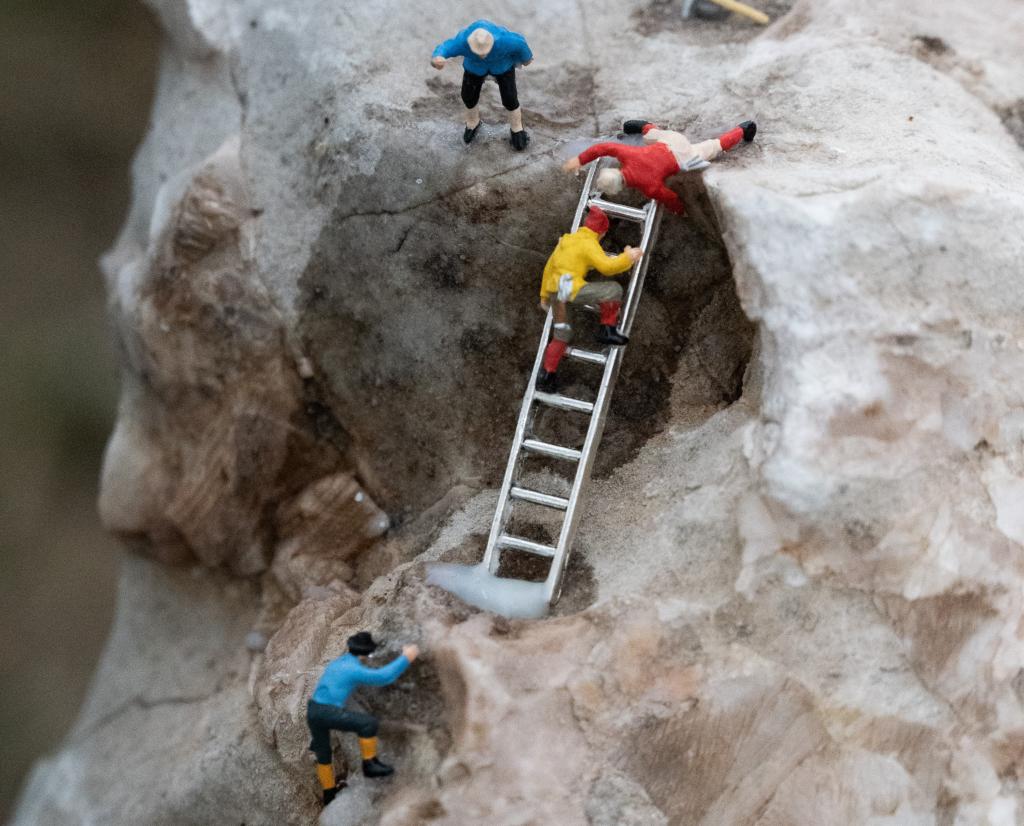 书香驿站旁的石头上,一群攀岩者挑战极限、勇攀高峰,时不我待、只争朝夕。