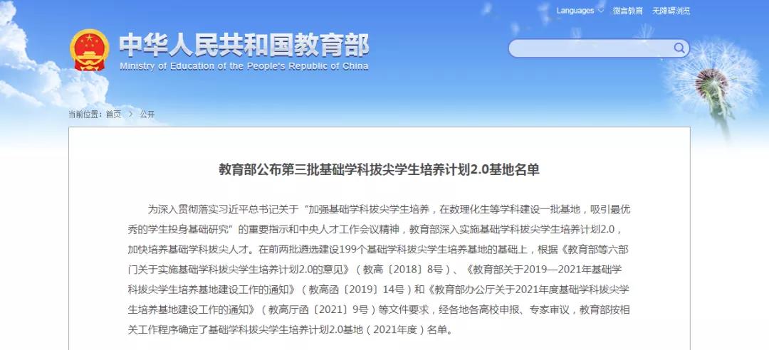 (通讯员 赵晨)近日,教育部公布了2021年度基础学科拔尖学生培养计划2.0基地(以下简称“拔尖2.0基地”),爱游戏 “计算机科学拔尖学生培养基地”成功入选。