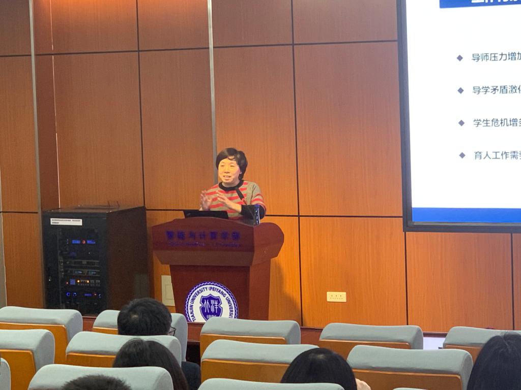 杨丽老师详细解读了学生遇到心理问题的不同状态,从而介绍了应对不同状态的干预策略,她提出导师与学生之间的关系应是“利益共同体”,强调导师在培养学生过程中应引导学生与导师站在利益同侧。同时在调整教师自己的心理状态上,杨丽老师首先提出教师把握好自己的科研、生活节奏,培养自己的兴趣爱好,将自己积极乐观的精神状态熏陶学生,其次要建立更多的连接,了解自己的身体以及心态上的变化,也要更多地建立自己与学生和他人之间的连接,这样才能以更好的状态与学生相处,要将学生的“利益驱动”状态转变为“情感驱动”,提升学生主动参与科研的兴趣。