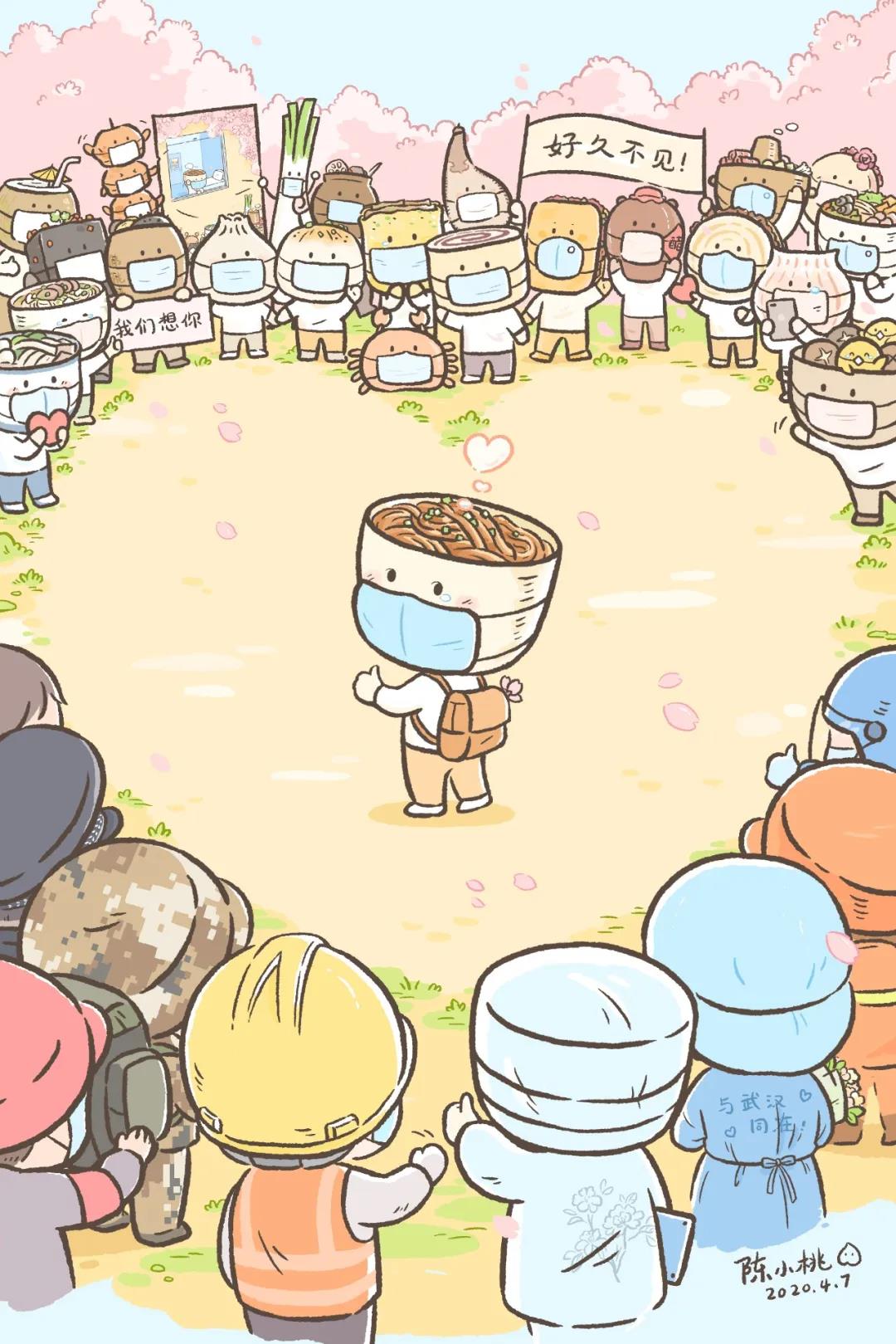 ▲“陈小桃momo”4月7日发表漫画“热干面好久不见”
