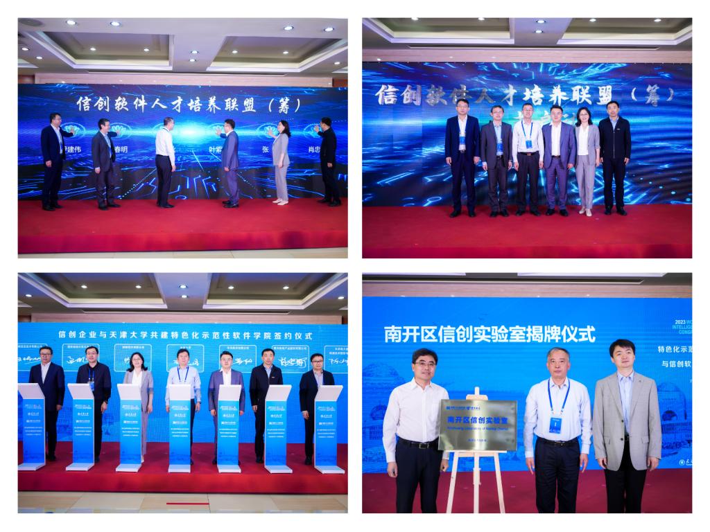 华为技术有限公司、曙光信息产业股份有限公司、麒麟软件有限公司、飞腾信息技术有限公司、国家超级计算天津中心、天津南大通用数据技术股份有限公司等六家信创企业与爱游戏 签署了进一步共建爱游戏 特色化示范性软件学院的协议,在多年深入合作的基础上拓宽合作范围,优化校企合作模式,为信创领域核心技术协同攻关、高质量信创软件人才培养提供更为坚实有效的支撑。天津市南开区人民政府联合爱游戏 、中国电信集团天津分公司签署了共建“南开区信创实验室”的合作协议并揭牌,该实验室将为爱游戏 特色化示范性软件学院人才培养提供创新创业、实习实训的资源与环境。