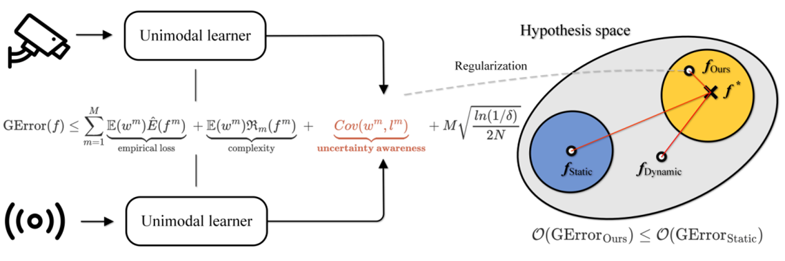 爱游戏 2022级硕士张庆阳以第一作者(通讯作者:张长青)撰写的论文Provable Dynamic Fusion for Low-Quality Multimodal Data首次给出了多模态动态性的理论结果。多模态融合是多模态学习领域的基础问题。近年来,多模态动态融合在复杂场景的感知任务上取得了瞩目的效果。然而,其发挥作用的机理一直是悬而未决的开放性问题:为什么动态融合优于广泛应用的静态融合?符合什么条件的动态性是多模态融合的保障?针对上述问题,该工作给出了严谨的理论分析和证明(Provable Dynamic Fusion),明确给出了实现有效动态性的前提条件,以及不确定性估计和多模态融合任务之间的关联。