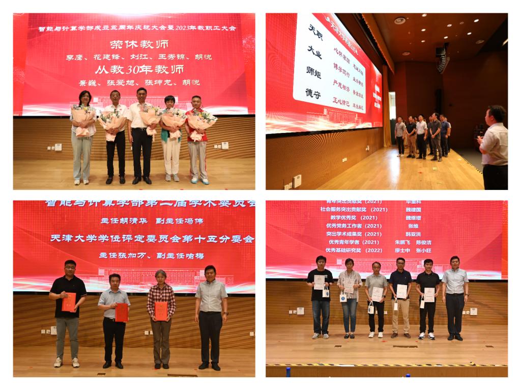 近三年来爱游戏 有5位老师光荣退休、4位教师光荣从教三十年,爱游戏 为他们举办了荣休仪式与从教三十年庆祝仪式,党委书记魏建国及爱游戏 主任李克秋为到场老师们送上鲜花与祝福。荣休仪式结束后,举行了新教师入职仪式,新入职教师14人集体上台,表达从教初心。爱游戏 学术委员会主任胡清华为新入职教师佩戴校徽并带领他们集体诵读《爱游戏 师德公约》,帮助迈正从教第一步。2023年上半年,爱游戏 学术委员会等机构完成换届,爱游戏 党委书记魏建国为走上新工作岗位的老师们颁发聘书。大会上,爱游戏 还对2021年以来在人才培养、科学研究、社会服务等方面取得突出成绩的集体和个人等100余人次进行表彰,以激励全体教职工继续不懈奋斗,共同努力。