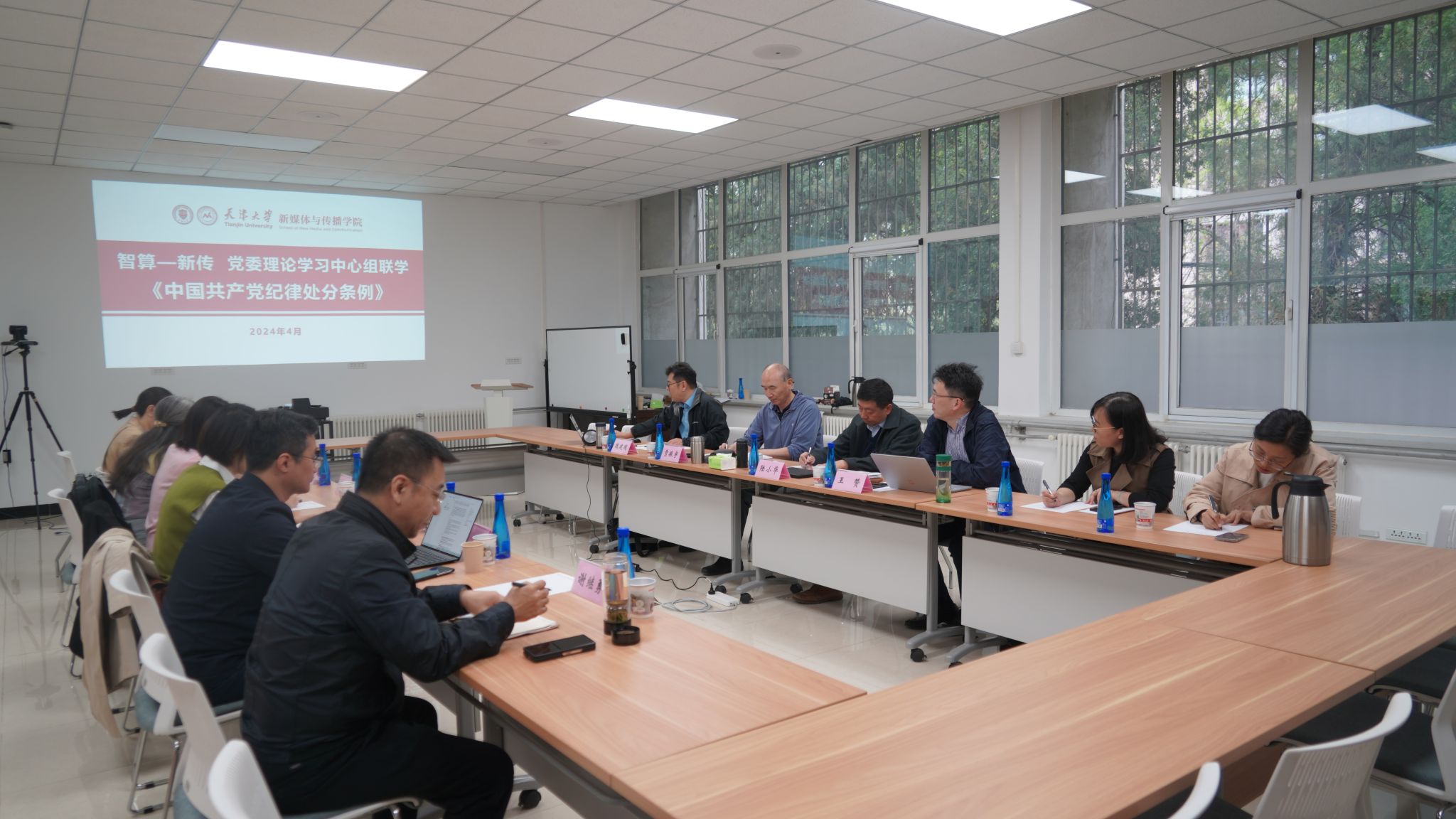 新媒体与传播学院院长陆小华发言,他谈到纪律严明是党的光荣传统和独特优势。从党史上来看,中国共产党作为百年大党,在各个历史时期高度重视并适时开展对全党的纪律教育。在这个重要历史节点开展本次党纪学习教育,我们应当从以下三个方面深刻理解。一是这次集中学习是中国共产党全面从严治党更进一步、更深一层、更高一级的体现,是以集中学习的教育形式推进党的自我革命。二是当前大国博弈持续加剧、全面深化改革持续推进,我们正处于中华民族伟大复兴的关键时刻,这就特别需要通过本次党纪学习教育推动全党团结成“一块坚硬的钢铁”,万众一心战胜一切风险挑战。三是党章是党的根本大法,本次党纪学习教育过程中,在原原本本学习《条例》的基础上,应当全面系统的学党章、学党史,做到理想入心、思想武装、规矩内化,以党章为尺来衡量工作,时刻保持解决大党独有难题的清醒和坚定。