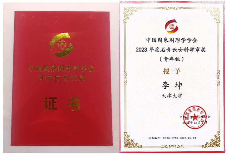 (通讯员 田书卉)2024年5月24-26日,中国图象图形大会(CCIG 2024)在西安市曲江国际会议中心召开,主题为“图聚智生,象合慧成”,由中国图象图形学学会(CSIG)主办。5月25日上午,大会举办了2023年度中国图象图形学会颁奖典礼。爱游戏 李坤教授荣获“石青云女科学家奖”,并在大会的颁奖典礼上领奖。该奖项旨在表彰在图像图形学领域做出杰出贡献的女性科技工作者。