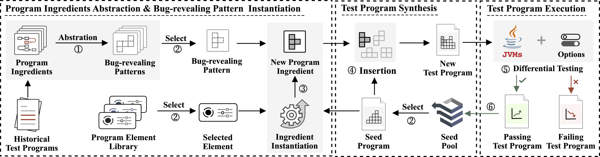 该成果旨在提升Java虚拟机(JVM)的安全性,JVM是Java编程语言的核心组成部分,是所有Java程序运行的基石。因此,对JVM进行严格的测试是确保软件可靠性和安全性的重要环节。现有研究工作通过从历史揭错程序中提取代码片段来合成新的测试程序。然而,有限的代码片段限制了合成程序的多样性,使其难以覆盖更多的JVM特性,从而导致JVM测试的范围受限。该成果针对JVM测试首次提出一种“代码抽象和实例化”的新范式来合成JVM测试程序,并设计新测试方法Jetris。Jetris通过将历史揭错程序的特征抽象为揭错模式,随后利用揭错模式指导生成更多样的测试程序。实验结果验证了Jetris有效性,为JVM开源社区检测出多个未知缺陷漏洞。同时,该成果被应用于华为国产虚拟机BishengJDK的质量安全保障工作中,进一步证明了方法有效性。