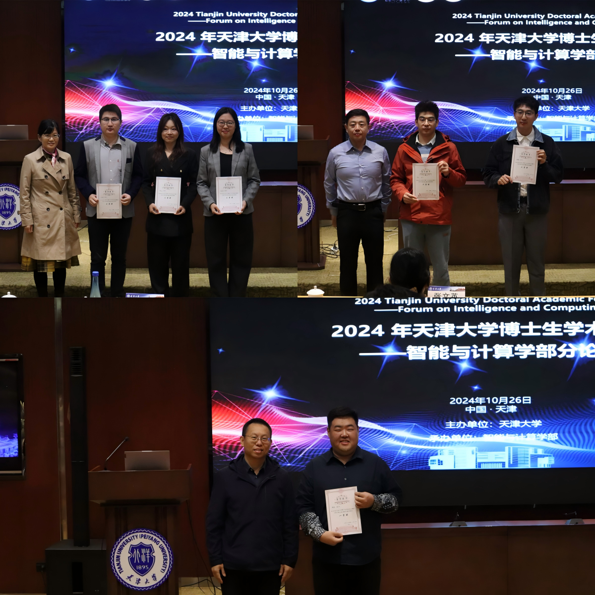 经过专家评审,博士生杨林同学获得论坛优秀报告一等奖,尤翰墨、陈旭同学获得论坛优秀报告二等奖,李鑫慧、王金斌、殷巧云同学获得论坛优秀报告三等奖。冯景华、胡旭、张文英教授为获奖同学颁发了证书。