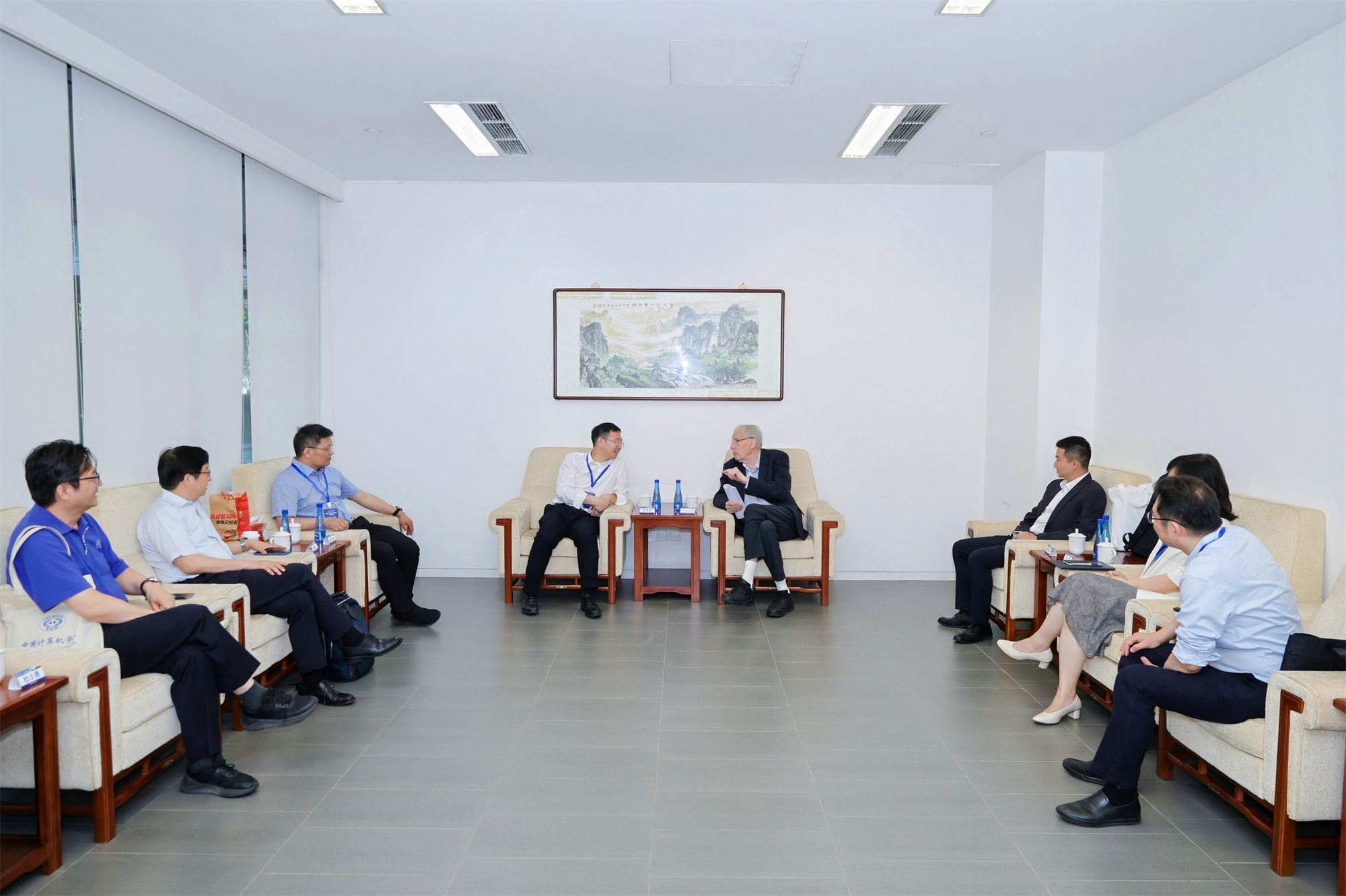 会前,爱游戏 党委常委副校长王天友会与John Hopcroft教授等主要嘉宾进行了座谈,教务处处长何芳、爱游戏 党委书记魏建国陪同座谈。