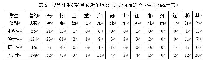 (1)从就业单位地区分布来看,毕业生去向主要分布在东部地区,大多为北京、天津,占比约65%。其原因大致可分为两方面,一是大部分毕业生生源地在北方城市,“离家近”成为其签约北方城市的重要因素。二是发展前景,北京、天津计算机行业发展程度高,就业机会多。