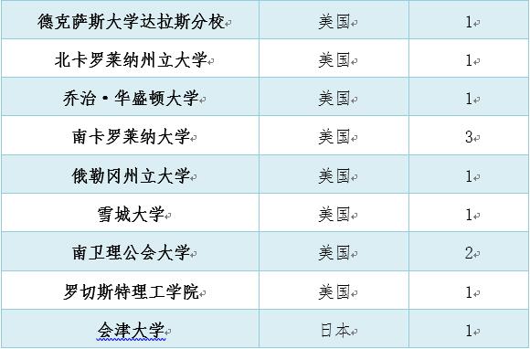 2018届毕业生中,选择出国(境)继续深造的毕业生人数为25人。其中本科生21人,占本科生总毕业生人数的7.8%;硕士研究生4人,占硕士总毕业人数的2%。2018届毕业生出国(境)继续深造的高校具体情况如下表所示:
