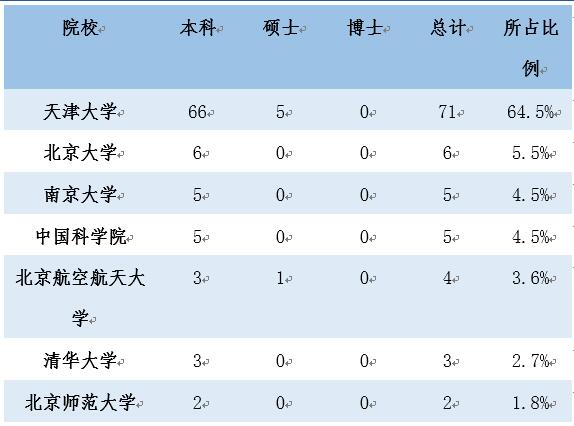 的人数共71人,占总国(境)内升学人数的64%。毕业生在国(境)内高校深造情况如下表所示: