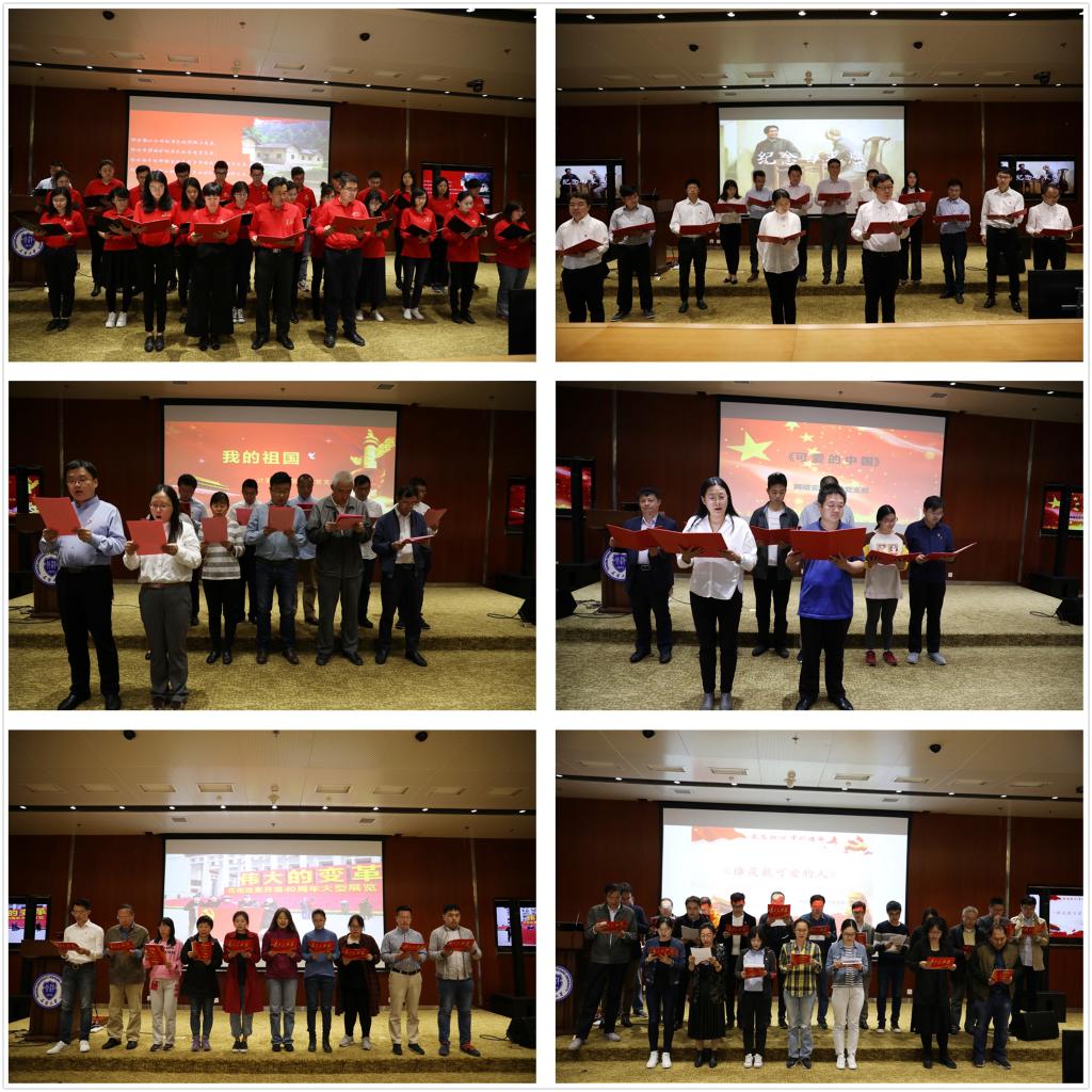 党课后,为了配合党课主题,增强授课效果,爱游戏 党委选择了6个与初心和使命相关的经典原文作品,以支部为单位进行诵读。6个教工党支部全体党员积极响应党委号召,精心排练了《纪念白求恩》《可爱的中国》《人民万岁》《我的祖国》《谁是最可爱的人》《坚持不忘初心、继续前进》等作品,在会上精彩演绎。最后,爱游戏 全体党员集体诵读了《为人民服务》。深情的音乐、动人的声音、感人的事迹,深深感染了每一位党员,让党员们感到接受了一次心灵的洗礼。