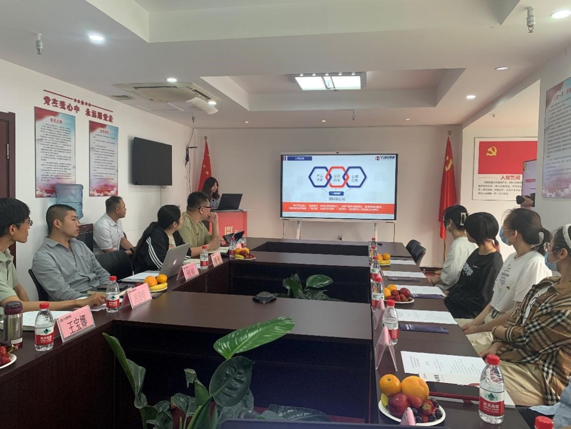 万贸科技有限公司党支部书记刘长林介绍了公司党支部建设的各项活动与举措、成效,公司在以党建促业务的宗旨引领下,以科技赋能服务社会、服务地方、服务人才培养、支援贫困地区教育发展等方面的工作,未来公司将在党的领导下继续拓展业务领域,不断加深与高校的合作,希望以此次主题党日活动为契机,加深双方在科技与艺术等领域的合作交流。